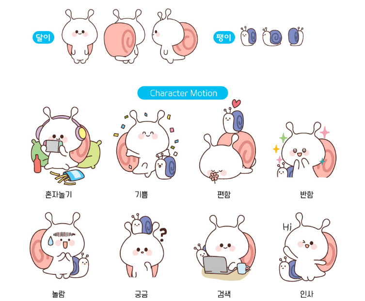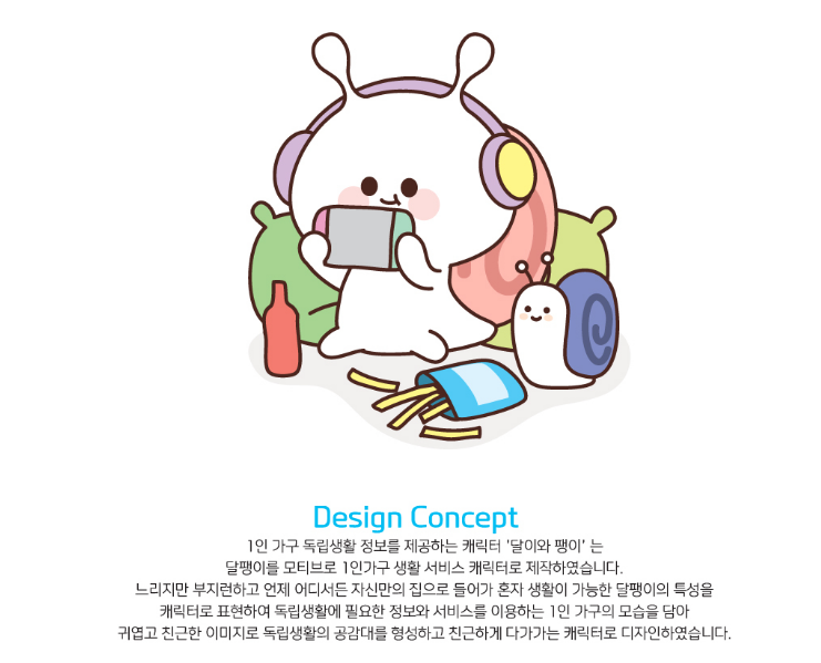 달팽이를 모티브로 1인가구 생활 서비스 캐릭터로 제작하였습니다.