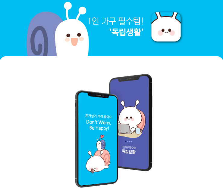 캐릭터로 표현하여 독립생활에 필요한 정보와 서비스를 이용하는 1인 가구의 모습을 담아