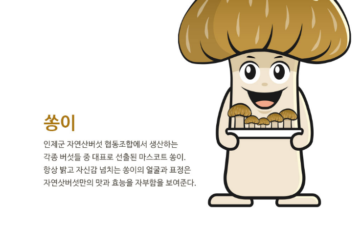 A. 인제군자연산버섯협동조합의 BI로 활용할 버섯 캐릭터가 필요합니다.