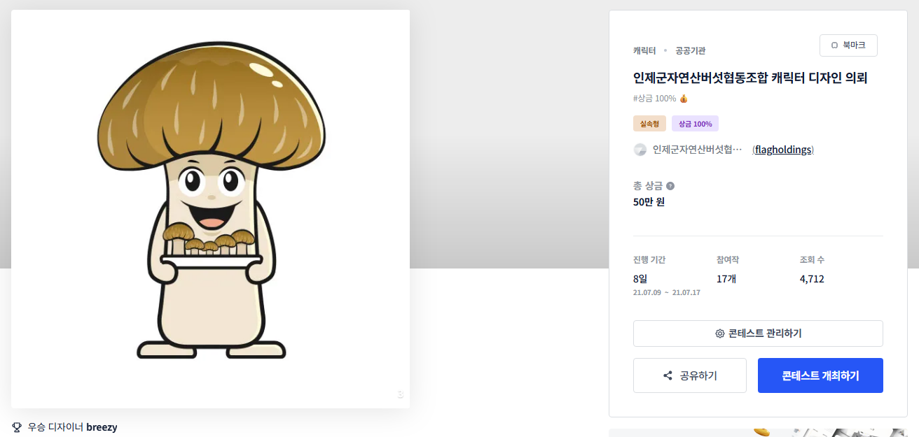 인제군자연산버섯협동조합의 디자인 콘테스트는