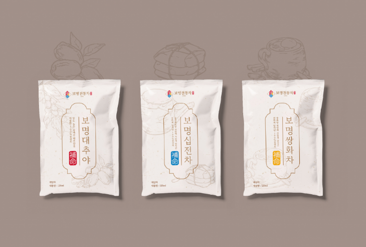 보명전통차의 개발된 로고시스템에 어울릴 수 있도록