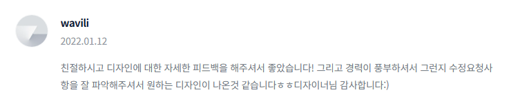 "다양한 시안을 받아볼 수 있고 제가 의도하는 디자인 컨셉을 잘 전달할 수 있다는게 참 좋더라고요.&...
