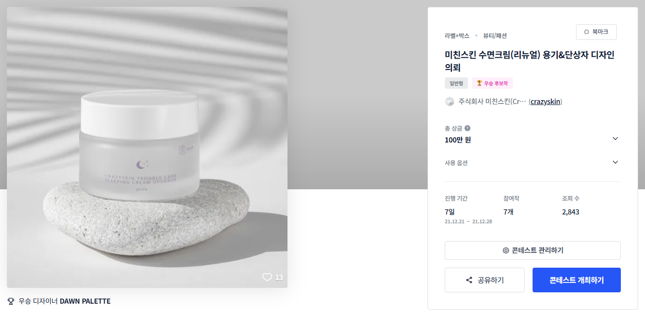DAWN PALETTE 디자이너님의 작품을 우승작으로 선정하셨습니다!