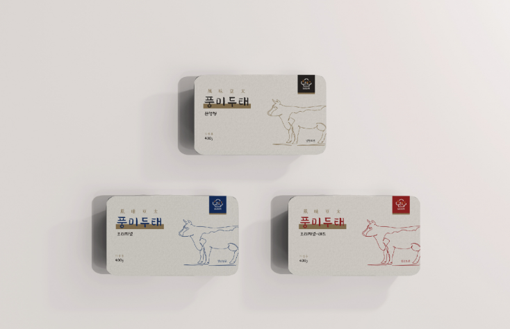 풍미두태의 세가지 맛 라벨을 각각 다른 색으로 표현하여 개성을 살리고,