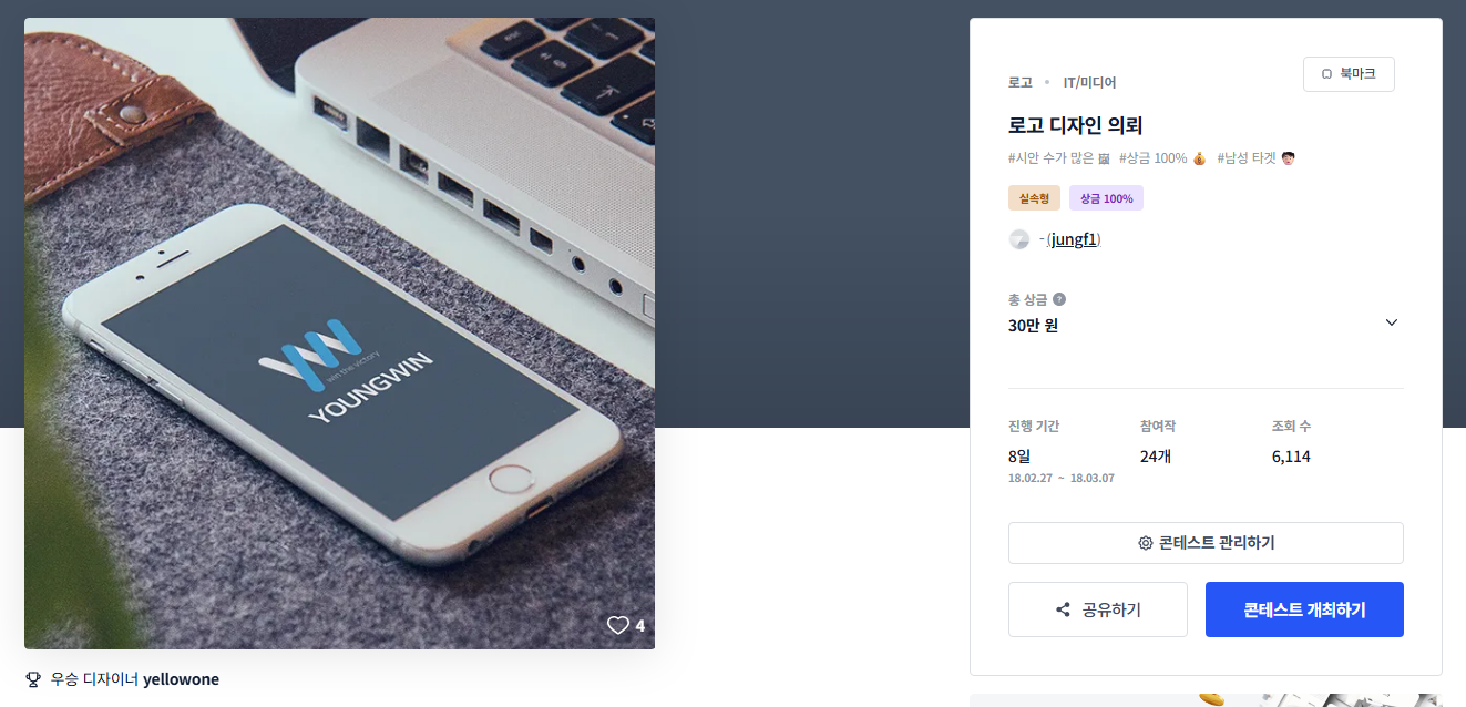 yellowone 디자이너님의 작품을 우승작으로 선정하셨습니다!
