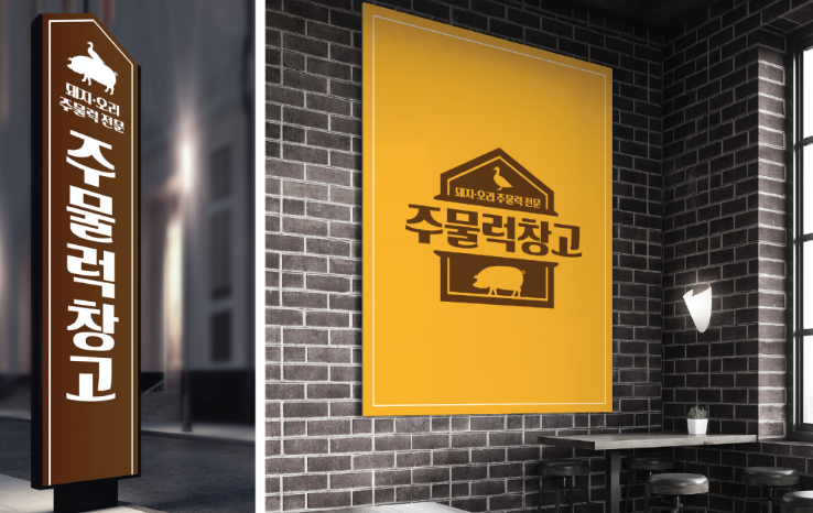 창고형 콘셉트의 주물럭 전문 식당 로고 디자인, 함께 보시죠!