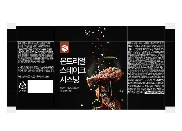 A. 스테이크에 뿌리는 시즈닝제품 소포장 라벨 디자인입니다.